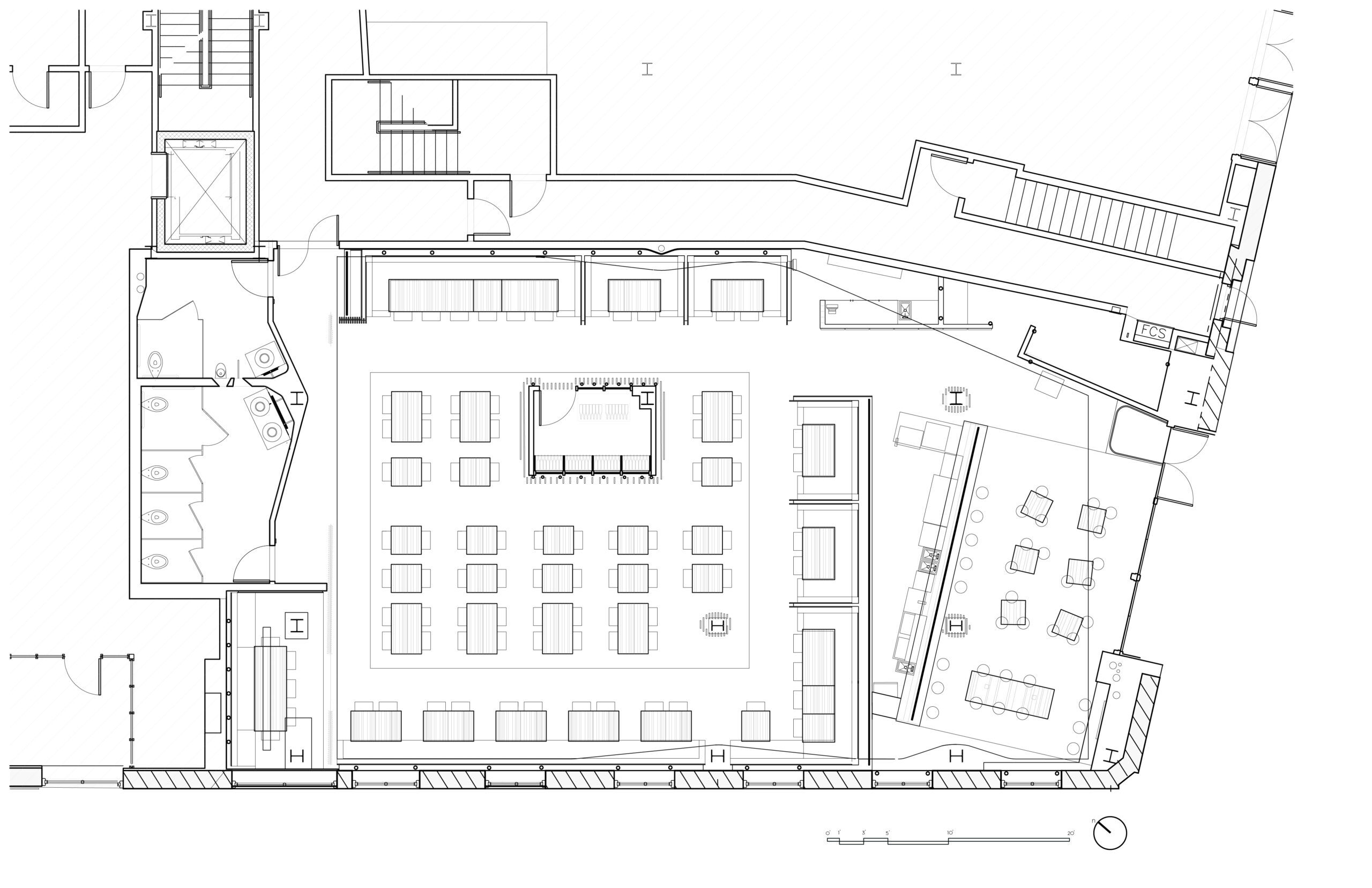 Boston, MassachusettsLocated in the old Penny Savings Bank, Banq Restaurant capitalizes on the spatial and functional peculiarities of the space as a ground for speculation and invention. Building upon ongoing research on digital fabrication, the entire ceiling is covered by a wood-slatted system that encases and conceals the inherited systems, while offering a large canopy under which to dine.